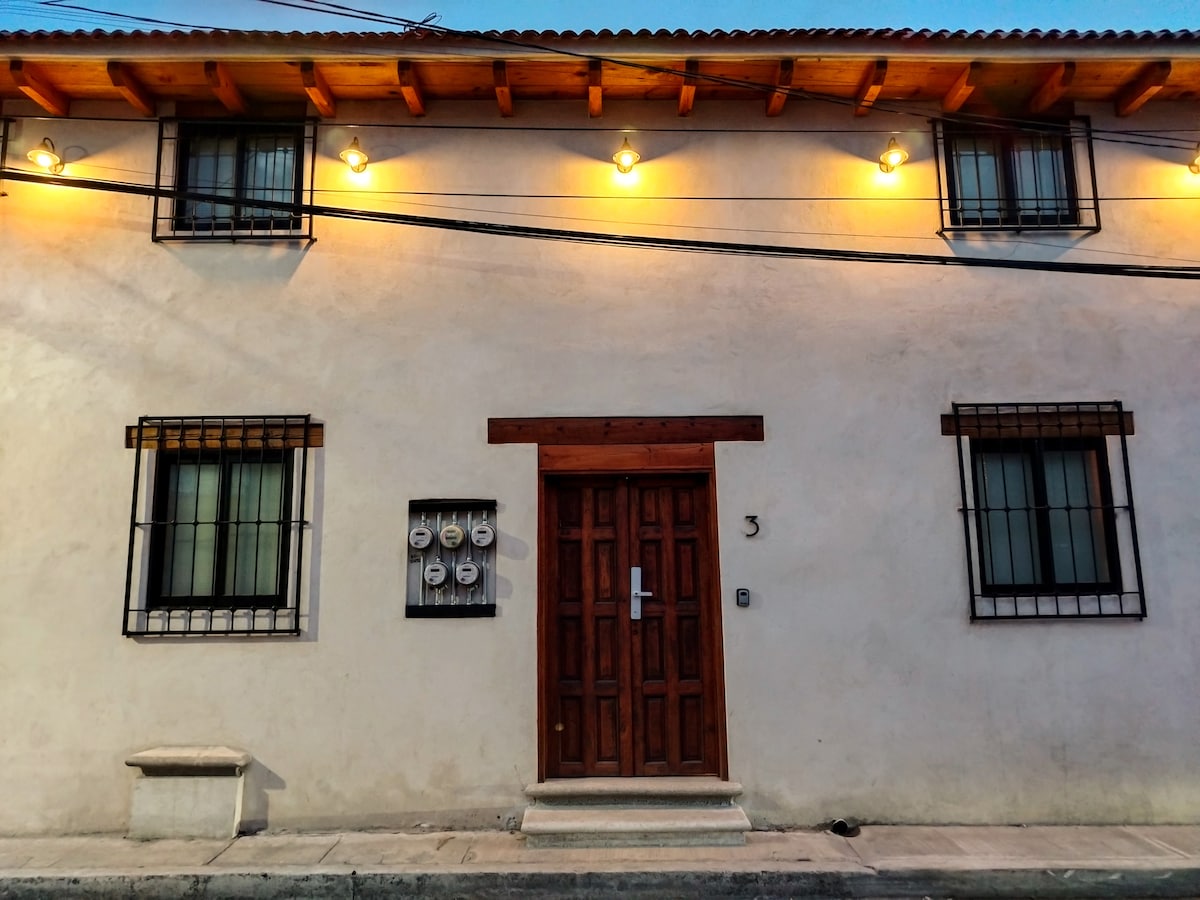 Departamento estilo vintage-rústico en una casa de más de 200 años de antigüedad que da a la calle en un lugar excelente a dos cuadras de la Plaza Central. Inmerso en el ambiente de la Ciudad, acondicionado para estar independiente y cómodamente, lo más conveniente de mi espacio es que está en el centro, puede que no sea el lugar ideal si solo quieres escuchar el sonido del campo. Ofrecemos elementos para desayunar como fruta, pan tostado, mermelada, mantequilla, leche y jugo.
