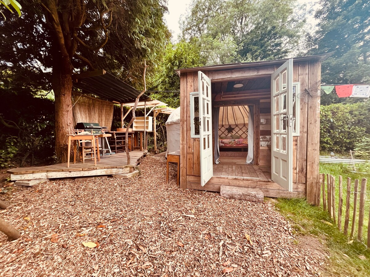 Nuestra yurta está bellamente hecha a mano, una experiencia verdaderamente mágica para alojarse. Totalmente climatizada para los meses más fríos, lo que significa que puedes conectarte con la naturaleza durante todo el año sin comprometer la comodidad. El quemador de troncos es ideal para pasar noches acogedoras, hay un pozo de fuego para sentarse por la noche y contemplar las estrellas. Con una zona de barbacoa cubierta y dos bañeras al aire libre que te dan la oportunidad de sumergirte con estilo. Cocina totalmente equipada y lujosa cápsula de ducha privada. Capacidad para 5 personas.
