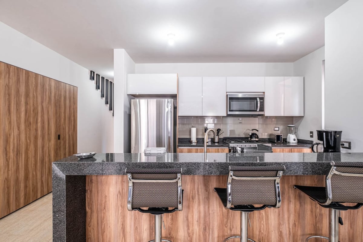 ¡Descubre las vistas más impresionantes de Querétaro! desde este moderno departamento de estilo industrial. A solo 10 minutos del centro, disfruta de increíbles panorámicas tanto de la ciudad como de la montaña. Perfecto para grupos de hasta 3 personas, ofrece un espacio acogedor y funcional que combina confort y estilo. Es ideal para viajes de trabajo o placer por el fácil acceso, comercios y la posibilidad de facturar tu estancia. Experimenta la comodidad que este departamento te ofrece.