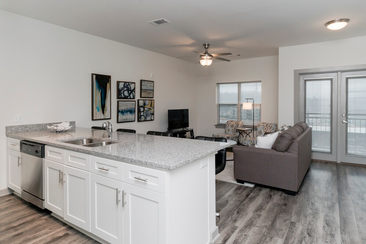 Este es un NUEVO condominio en EL CENTRO de la ciudad con balcón en el último piso. Tiene una cocina moderna y un baño recién terminado, equipado con muebles lujosos y elegantes y ropa de cama fina, y todos los elementos esenciales que jamás imaginarás. También se proporciona un espacio de estacionamiento gratuito para tu estadía. Este condominio está en el corazón del centro de Chattanooga, cerca de atracciones populares como el acuario, museos y restaurantes, etc. Acceso fácil a las I-24,27 y 75. Ideal para reuniones familiares y lugares de interés.