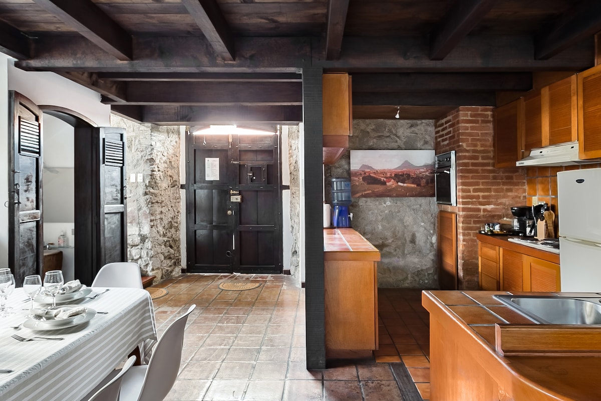 Ubicado en el corazón de Antigua Guatemala en un área privilegiada; se puede caminar hacia restaurantes y áreas turísticas. Un apartamento tipo loft a doble altura para para 3 adultos, o 2 adultos y 2 niños. Cuenta con wifi de alta velocidad, cocina equipada, tv con netflix y cortesía un excelente café guatemalteco!