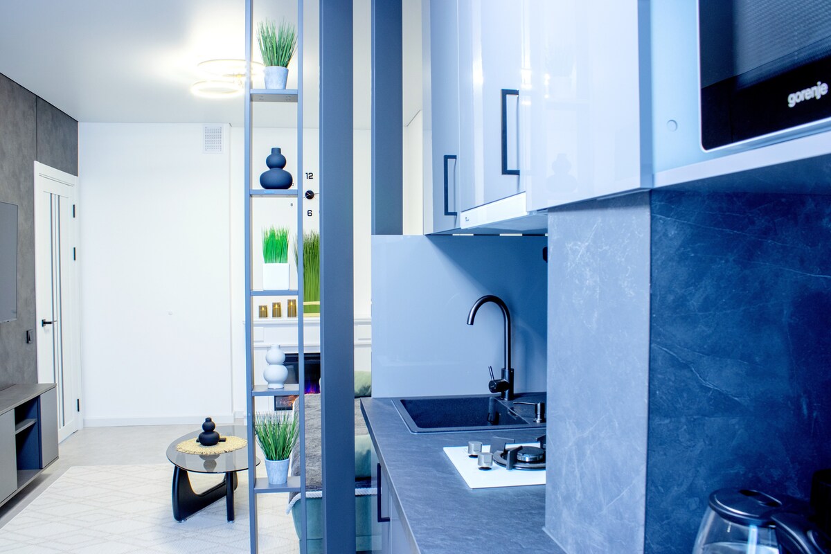 Relaxează-te într-un apartament elegant în inima Chișinăului, cu finisaje din marmură și lemn natural. Te vei bucura de o saltea premium Vi-Spring Bedstead, o cadă spațioasă și un balcon cu șemineu decorativ. Apartamentul are perdele cu telecomandă și espressor cu cafea pe boabe Blocul beneficiază de recepție și pază 24/24, oferindu-ți un plus de siguranță, confort și liniște pe durata întregii șederi.