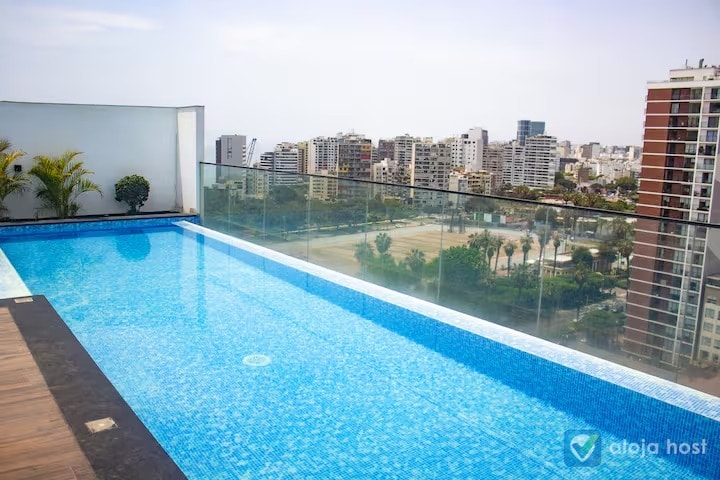 Disfruta una experiencia única en este moderno departamento ubicado en el piso 20, con una espectacular vista al mar y la ciudad desde el piso 21 (Terraza panorámica del edificio) Ideal para escapadas en pareja, viajes de trabajo o estancias cómodas en una de las mejores zonas de Lima. ESTACIONAMIENTO Interno incluido.