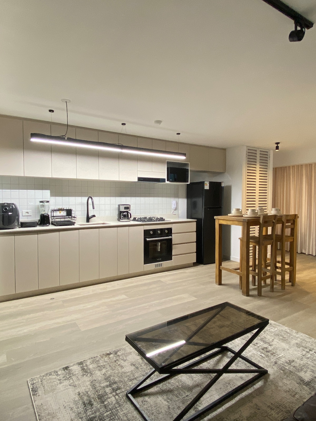 Departamento moderno full amoblado, ideal para largas estancias. Cuenta con Wi-Fi de alta velocidad, Smart TV 65” con Netflix y Disney+, cocina totalmente equipada con cafetera espresso, filtro de agua, lavaseca, cama queen y balcón. Edificio con piscina, gym y coworking. Autocheck-in 24/7, smartkey, estacionamiento gratuito y seguridad 24h. Ubicación estratégica en San Miguel, cerca de universidades, centros comerciales y a menos de 20 min del aeropuerto.