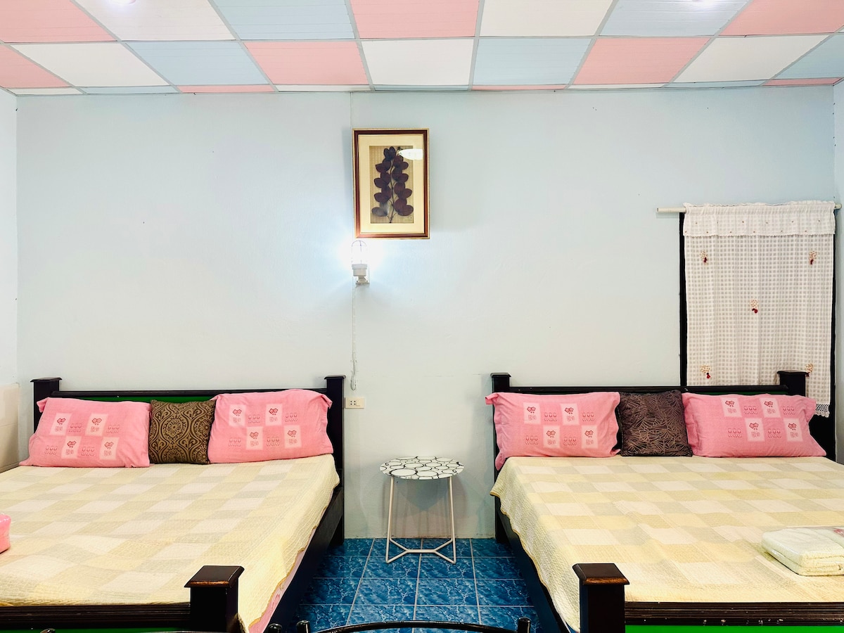Our hotel has only 4 rooms in total.This is the Sea view room located on the upper floor of the building.This room can occupy up to 4 people. There is 1 King bed, and we can put 2 extra mattresses on the floor next to the bed. The extra mattress costs THB 400 / set. A breakfast is not included. Breakfast costs THB 250 / set.