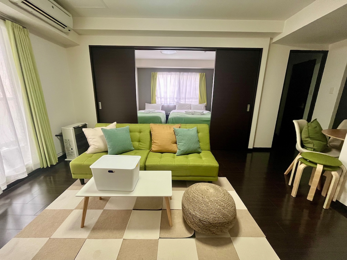 約59㎡の広々空間・最大6名・家族向け・プロジェクター/足もみ機完備・すすきの徒歩圏内・高利便性
