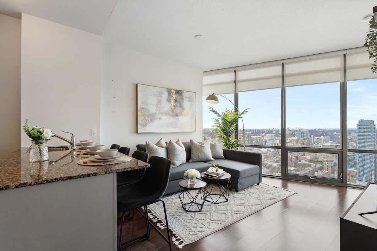 Bienvenido a nuestro moderno refugio urbano en el corazón del centro de Toronto, situado junto a la animada zona de Yorkville y la prestigiosa Universidad de Toronto. Experimenta la combinación ideal de lujo y comodidad en nuestro apartamento elegantemente amueblado, con impresionantes vistas a la ciudad. Descubre tiendas, restaurantes y atracciones culturales de clase mundial a solo unos minutos. Nuestro espacio tiene capacidad para tres huéspedes y ofrece una lujosa cama tamaño queen en el dormitorio y un sofá cama extraíble para un huésped adicional.