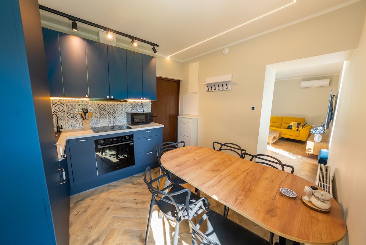Un apartamento moderno en el centro de Ustroń: 50 m2 de comodidad, a solo 150 metros de los pintorescos bulevares del río Vístula, a 50 metros del anfiteatro y a 700 metros del centro de la ciudad. Televisión de ✅ 75 pulgadas ✅ Aire acondicionado y parasoles ✅ Lavadora-secadora ✅ Cocina totalmente equipada. Internet de✅ alta velocidad (fibra óptica) Barrio ✅ tranquilo con vistas a la vegetación Es el lugar perfecto para una escapada, un fin de semana romántico o una exploración activa de los Beskids.