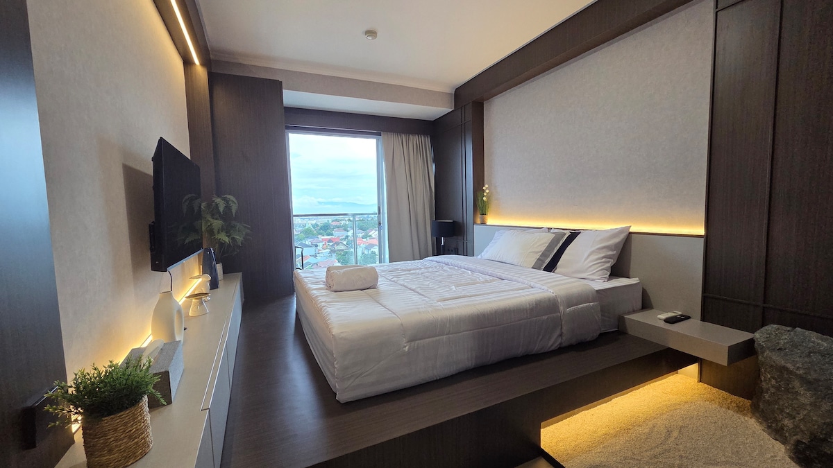 El castillo de Rey presenta una elegante y elegante experiencia de alojamiento en un apartamento. Este alojamiento de 1 dormitorio está diseñado con un toque japonés moderno, equipado con una televisión inteligente, aire acondicionado, una cocina funcional y un balcón privado que ofrece vistas relajantes. Disfruta de unas instalaciones completas que van desde una hermosa piscina, una cómoda zona de descanso, hasta un ambiente tranquilo y exclusivo en el apartamento. Una oferta para unas vacaciones románticas, unas vacaciones familiares o un viaje de negocios con estilo.