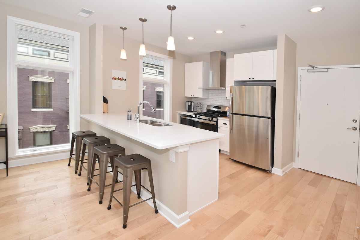 Experimenta Cincinnati alojándote en el lujoso alojamiento de 2 dormitorios y 1,5 dormitorios, situado en el barrio sereno y familiar de Over-The-Rhine. Su ubicación privilegiada ofrece un refugio relajante al tiempo que permite un acceso rápido a los mejores restaurantes, tiendas, parques y atracciones. El diseño elegante y la rica lista de servicios satisfarán todas tus necesidades. ✔ 2 BD cómodos. ✔ 1 cocina totalmente equipada ✔ Open Design Living Azotea ✔ privada ✔ Lavadora y secadora Wifi ✔ de alta velocidad ✔ Televisores inteligentes ✔ Estacionamiento a pocos pasos
