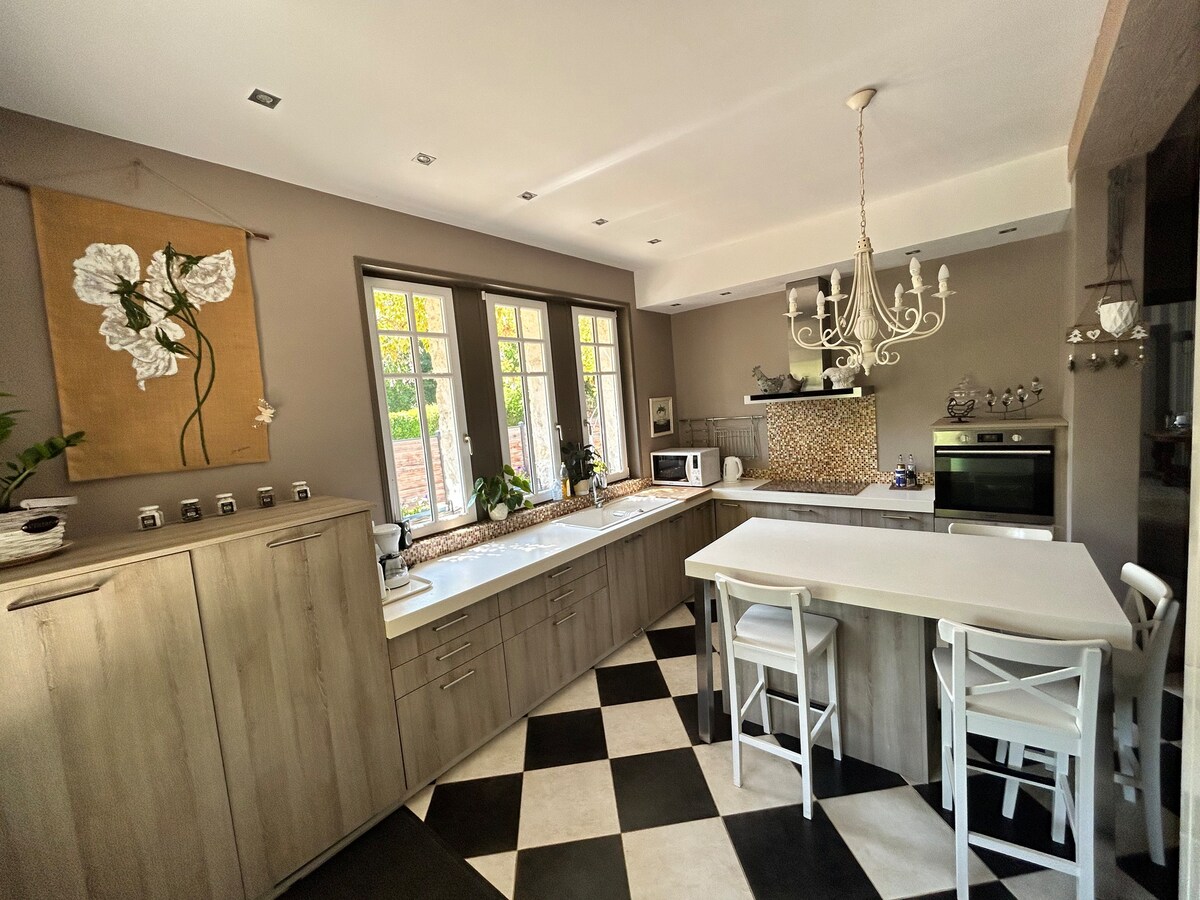 Casa de carácter, luminosa, con amplio espacio habitable. En medio de la naturaleza, muy tranquilo. Senderos para caminar o en bicicleta (bosque de St Gobain 2mn). 20 min Soissons (N2) o Laon y sitios históricos (Coucy Le Chateau, Chemin des Dames, Cueva del Dragón, Catedral Gótica). Estación de tren a 6 minutos (París a 1h20). 15 minutos del Parque Central. 55 minutos de Reims, capital de Champagne.