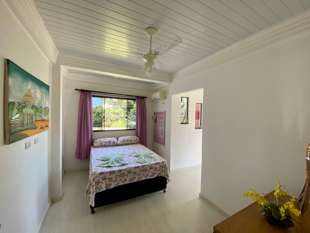 Acogedora casa de dos plantas, con dos dormitorios (máximo 7 personas), dos baños completos, salón, cocina completa y espacio para dos coches. La residencia está en un barrio residencial, tranquilo y silencioso en la región central de Foz do Iguaçu. Acceso al transporte público a 450 metros (5 minutos). La casa tiene dos garajes descubiertos que estarán disponibles. Compartirás el espacio exterior de la casa con una sola persona, que estará encantada de compartir información sobre la ciudad.