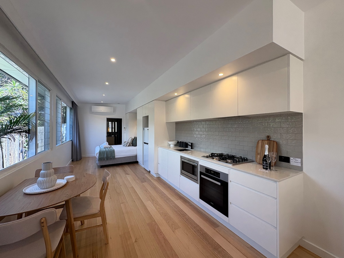 A perfect Hotel like stay while exploring all that Byron has to offer. Walking distance to the eclectic town centre, glorious beaches, the magnificent lighthouse, or coffee/breakfast/lunch at the iconic Top Shop right next door! Fully renovated and inclusive of simple luxuries - whole house filtration system, king bed with dreamy linens, kitchenette, ensuite, Lief products, air-conditioning and a private relaxing courtyard with hot/cold outdoor shower.