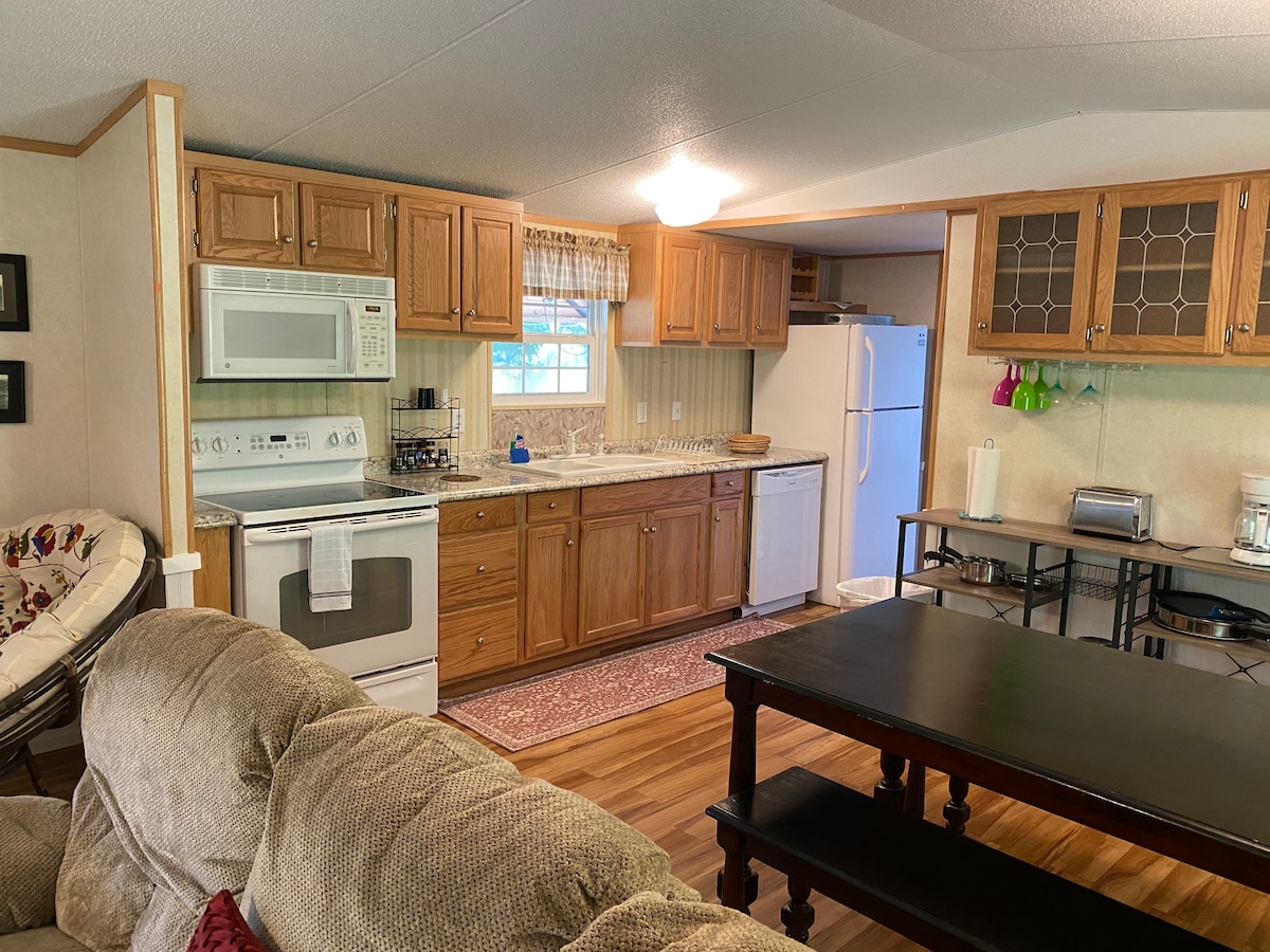 ¡Vida en Claytor Lake! A 10 minutos de Radford y a 5 minutos de la Interestatal 81, la propiedad se encuentra en un lugar privilegiado para disfrutar de las hermosas vistas del lago. Construido a principios de la década de 1940, este acogedor albergue de 1 habitación es el lugar perfecto para escapar de todo. La gran habitación es de concepto abierto y contiene una cama doble (que es una cama plegable), un sofá cama doble, cocina, sala de estar con TV y comedor. La lavandería, el dormitorio con literas y el baño se encuentran fuera de la habitación principal. Los propietarios viven en terrenos contiguos. Ideal para 2 adultos/2 niños.