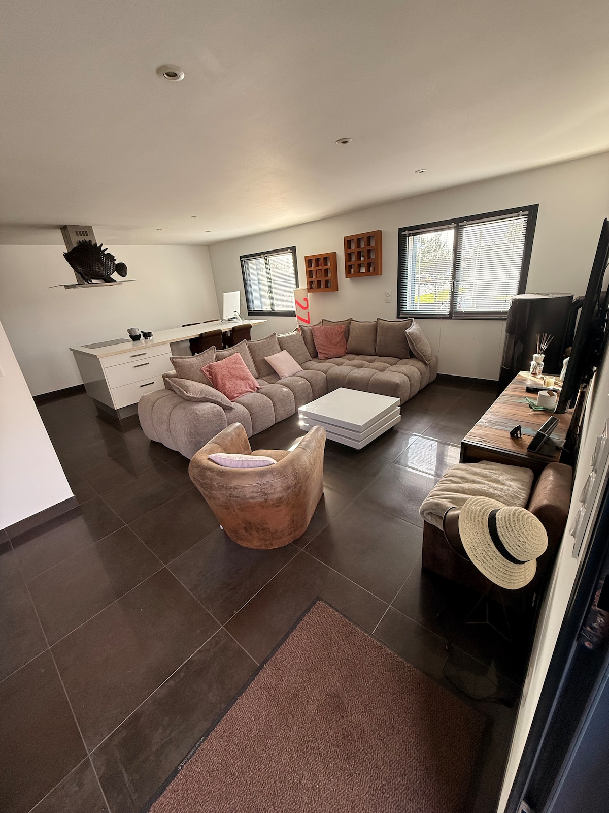 Buscas un alojamiento diferente a los demás. Al renovarlo, queríamos muebles que no encontrará en casa de todo el mundo, muebles de madera, que tengan encanto, una historia, la mayoría de las veces fabricados en Francia. Este concepto aporta serenidad, calma y confort. La renovación también se elige en armonía respetando la ecología: las paredes de cáñamo/cal, el aislamiento de paja, los tabiques de madera, las losas de pizarra en el baño y el inodoro.