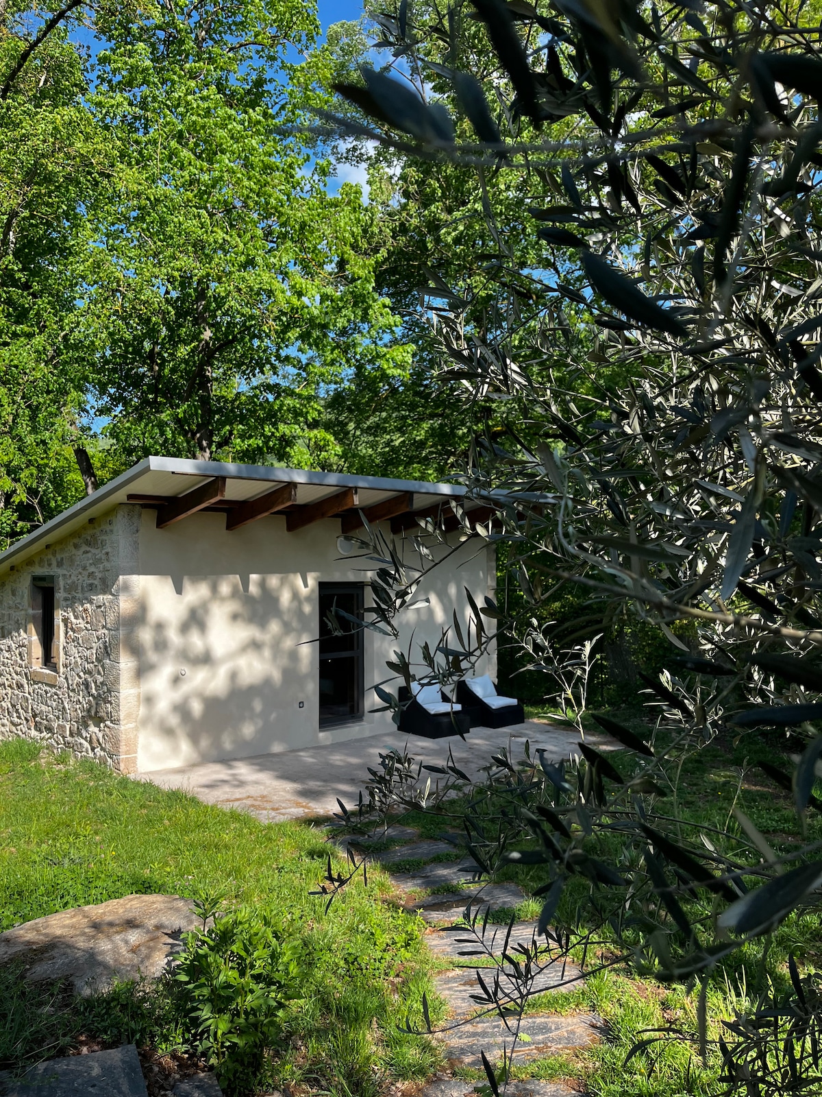 Nuestro alojamiento con cocina equipada está reservado para usted. Se encuentra sobre el Puente del Diablo y ofrece una vista excepcional de nuestros paisajes auténticos. La terraza y una zona de relax le ayudarán a suspender el tiempo. Un hermoso baño con ducha a ras de suelo, y un dormitorio con ventanal con vistas magníficas. Todo con aire acondicionado. Soy productor de aceite de oliva ecológico, cultivo y transformo mis aceitunas en aceitunas originales. Más información sobre lalogeduloriot.