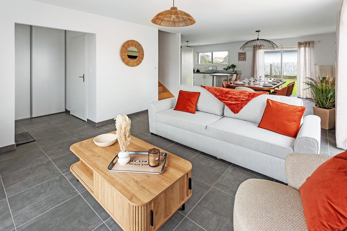 Bienvenue dans notre maison neuve en impasse à Clisson, idéale pour un séjour en famille, entre amis ou professionnel. 🏡 3 chambres, 1 SDE, 2 WC 🛏️ 3 lit doubles + 2 lits simples + 1 canapé-lit double = 10 couchages 🖥️ Cuisine équipée, Wi-Fi, lave-linge, sèche-linge, lave-vaisselle, cafetières 🌳Un beau jardin avec terrasse et plancha 🧺 Linge de lit & serviettes fournis 🧹 Ménage en fin de séjour 🅿️ Stationnement gratuit devant la maison 🛎️ Arrivée autonome dès 16h