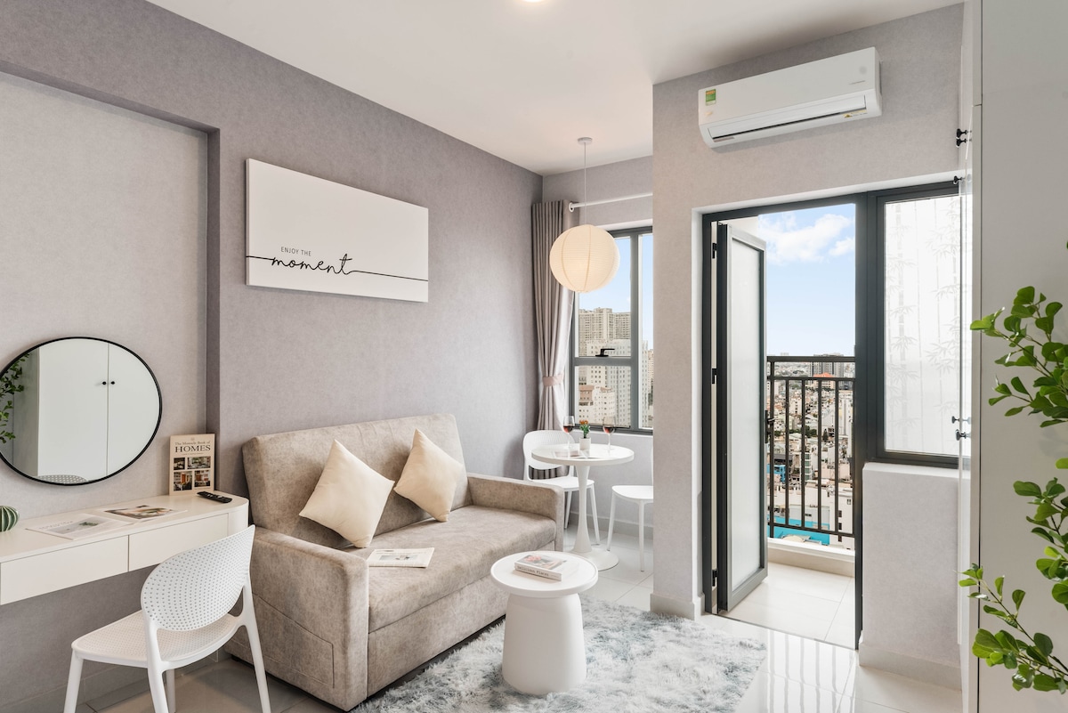 Proyecto nuevo que se encuentra en el distrito cercano con el Distrito 1 Estudio de alta gama y 100% nuevo con todos los servicios que incluyen: piscina infinita,sauna,lavandería, baño, wifi gratuito, cocina, mesa de comedor, espacio de trabajo conjunto, sala de fiestas,... ★Tiempo estimado en taxi - A 10 minutos de la catedral de Notre Dame. - A 5 minutos del mercado Ben Thanh. - A 5 minutos del edificio Bitexco. - A 15 minutos del edificio The Landmark 81.