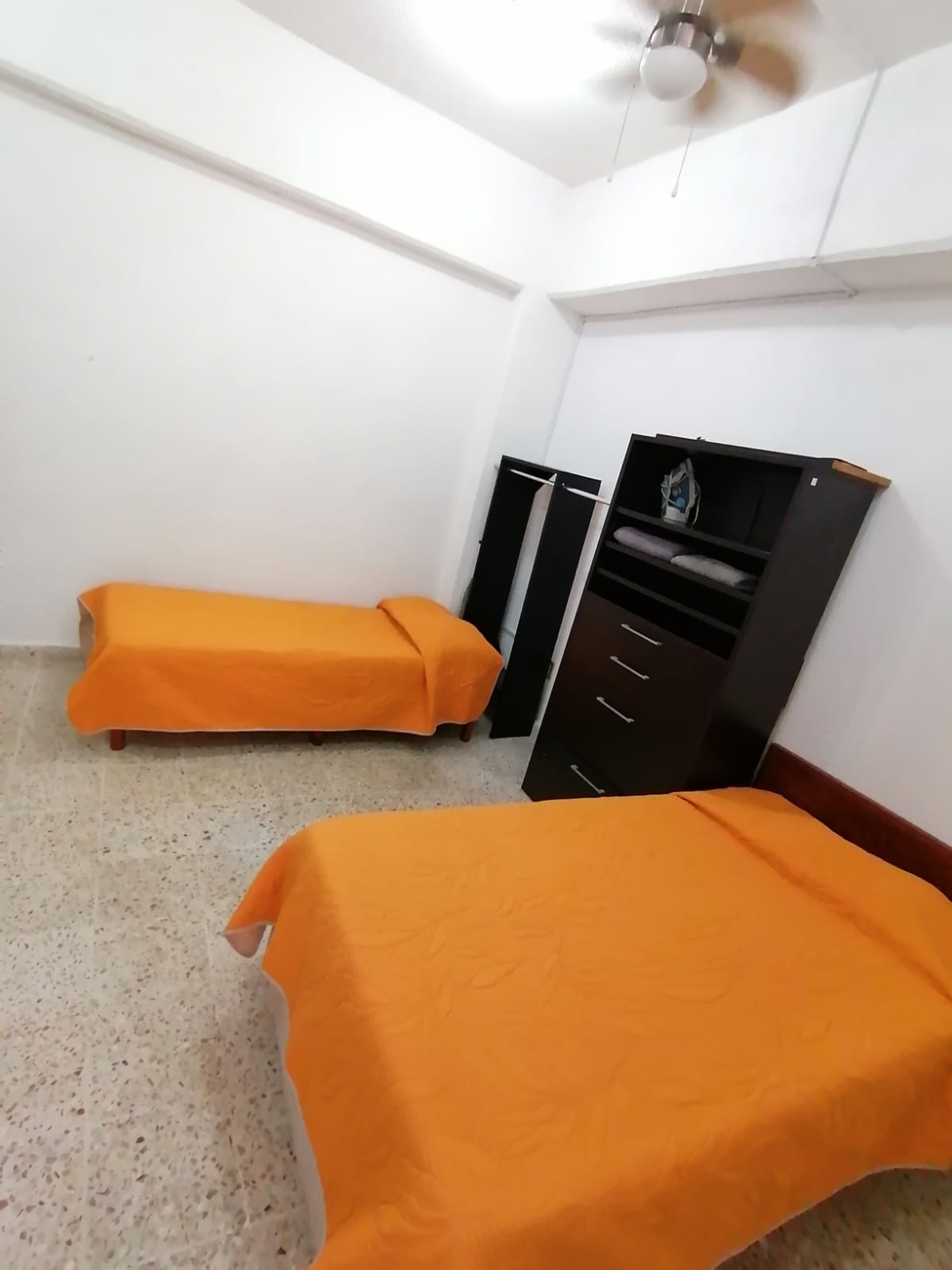 Departamento muy amplio, ventilado, cómodo, con todo lo que necesitas para tu estancia. NO ES UN DEPARTAMENTO DE LUJO, es un departamento FUNCIONAL! ubicado en el 3 piso. El departamento cuenta con dos amplias habitaciones climatizadas , en la recamara principal dos individuales y en la recamara secundaria dos matrimoniales, un baño, estancia sala comedor amplia y cocina equipada, estacionamiento privado para guardar tu vehículo y reja de seguridad al acceso , con gusto recibo a tus mascotas!
