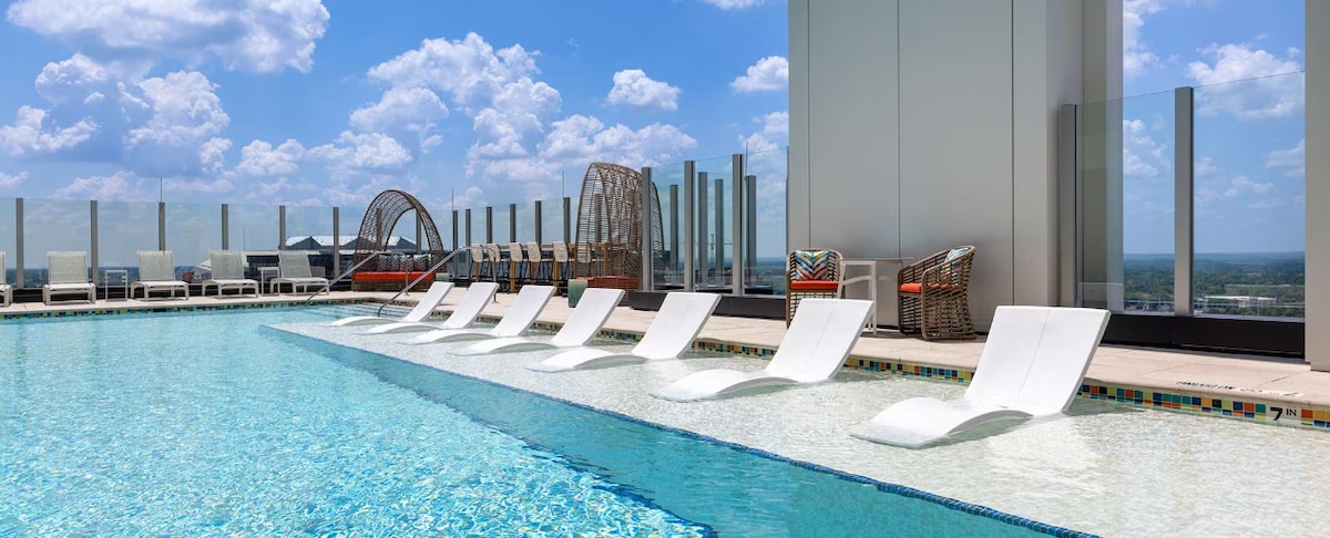 Relájate en este tranquilo y elegante apartamento de Buckhead. Disfruta de un ambiente tranquilo con todos los elementos esenciales, además de aperitivos y bebidas de cortesía para comenzar tu estancia. El balcón es un ambiente total con vistas a la ciudad, perfecto para el café de la mañana o la relajación de la noche. Descanse en una cómoda cama tamaño queen, vea una película en la televisión inteligente y disfrute de las ventajas adicionales: ✨ Sin gastos de limpieza 🌿 420 Amistoso Acceso a🏊 la piscina 💪 Gimnasio + sala de ordenadores