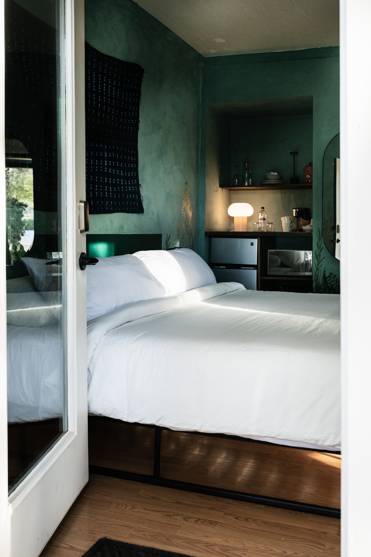 The Garden Room is a masterclass in intimacy—a secluded retreat for those seeking the solace of a hidden sanctuary. Tucked into the back patio off the Sunshine Suite with its own private entrance, it offers the elevated feel of a boutique hotel suite. Enjoy the minimalist calm of the garden facing room and a discreet refreshment station for your morning coffee. Here, the transition between interior comfort and the garden's edge is seamless. Total Square Footage: 360 Sq. Ft.