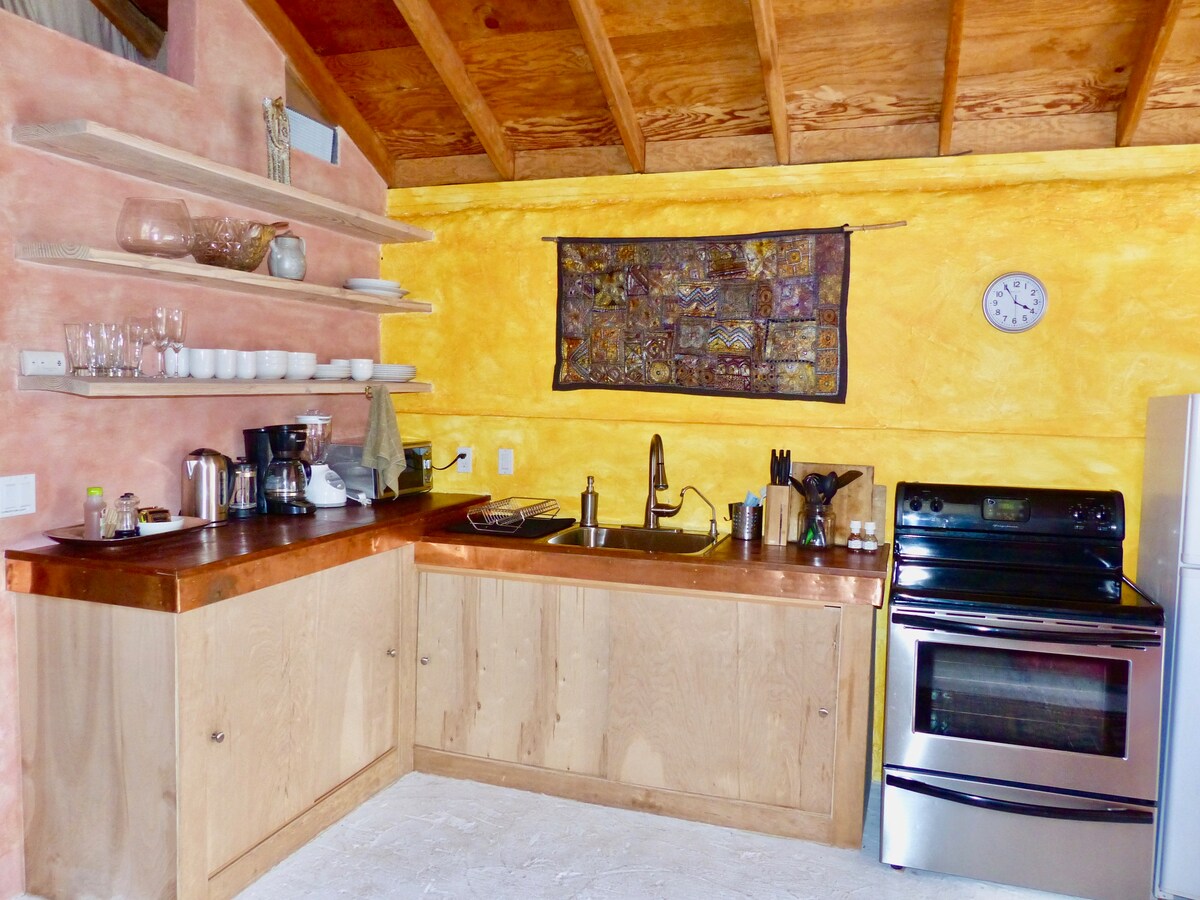 Nuestra minicasa de nueva construcción se encuentra en el corazón de West Sedona. Es una minicasa zen espaciosa. Despiértese con vistas impresionantes desde un colchón Tempur-Pedic tamaño queen. La cocina cuenta con una placa de cocción y un horno de convección para preparar comidas increíbles. Y, por supuesto, una cafetera con granos orgánicos. Dejamos crema orgánica fresca y granola para cada huésped. La minicasa se encuentra en una calle tranquila, pero cerca de todo.