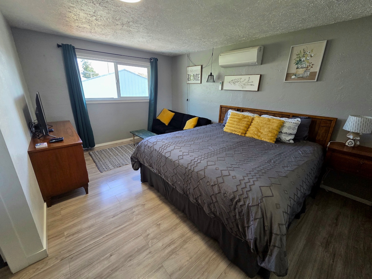Descubre el mejor retiro del norte de Idaho a pocos minutos del lago Fernan en el lago Coeur D'Alene. Sumérgete en una suite principal amueblada moderna de mediados de siglo cuidadosamente diseñada, donde las anestésicas minimalistas se encuentran con la belleza natural. Un acogedor cama tamaño queen, muebles de inspiración vintage y un espacio de trabajo dedicado armonizan con el entorno sereno. No estamos frente al lago, pero estamos a 5 minutos a pie del muelle en Fernan Lake. ¿Necesitas otro incentivo para reservar? ¡No hay ninguna tarifa de limpieza!