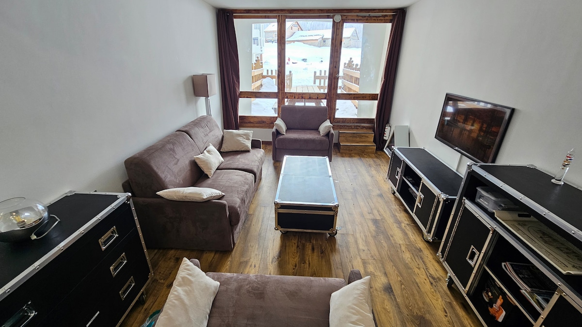 Situado en Hameau, en una zona tranquila, en la parte más soleada de la estación, este alojamiento de 28 m2 está reformado y equipado para su comodidad. La fibra de internet está disponible en el apartamento También tiene un balcón de 5 m2 en el que podrán comer cuatro personas, así como un armario para esquís individual. Salida y regreso con los esquís puestos: pista azul Estacionamiento colectivo, servicio de transporte y funicular gratuito Se instala una caja de llaves para que pueda llegar y salir de forma independiente