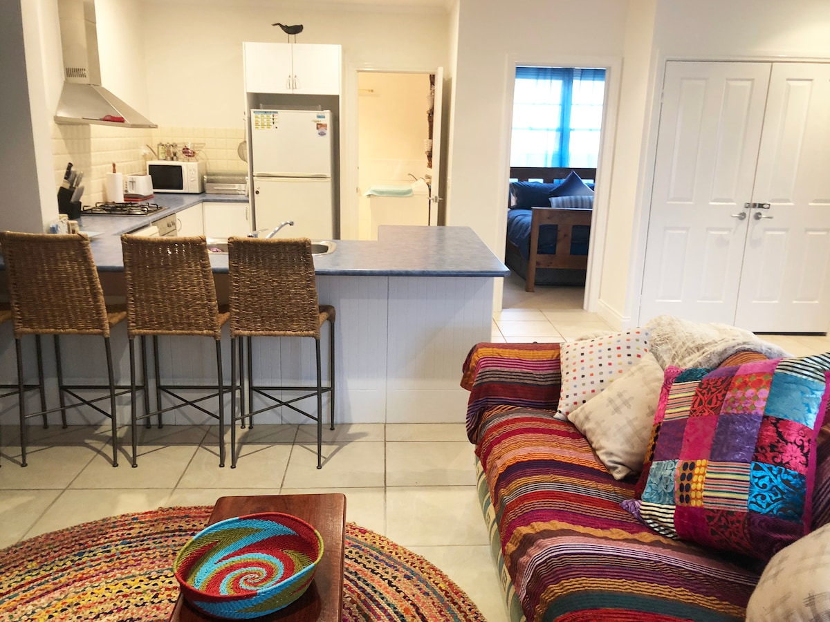 ¡Te damos la bienvenida a la soleada Apollo Bay! Al alojarte en nuestro bungalow, puedes esperar una noche de sueño reparador en una ubicación tranquila a tiro de piedra de las atracciones locales, pubs, restaurantes y, lo más importante, ¡nuestra hermosa playa! Nuestra acogedora casa de campo incluye wifi gratuito, un dormitorio separado con una cama tamaño queen, sala de estar, tetera y cafetera, baño y patio, todo lo cual se disfruta mejor relajándose con un cóctel en la mano después de un largo día explorando la costa. Lo sentimos, no se admiten niños ni mascotas.