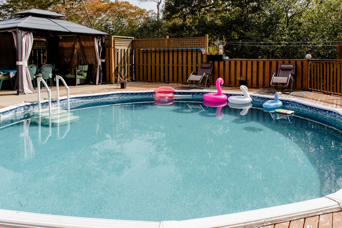 Bienvenido a una de las casas de 2 pisos de mejor calidad disponibles en Dartmouth/Cole Harbour. 4 dormitorios más salas de estar y familiares. Cocina completa de calidad de chef con encimera de Corian y 2 fregaderos y grifos dobles. 8 nuevas camas/sofás cama de alta calidad más jacuzzi. Hay muchas plazas de aparcamiento gratuitas a lo largo de la entrada privada extralarga con árboles maduros y flores. A 1 minuto caminando de la playa de Kiwanis. A solo 25 minutos en auto del centro de Halifax. Ideal para reuniones familiares/vacaciones/piragüismo/viajes de negocios o estancias cortas. Aire acondicionado añadido.