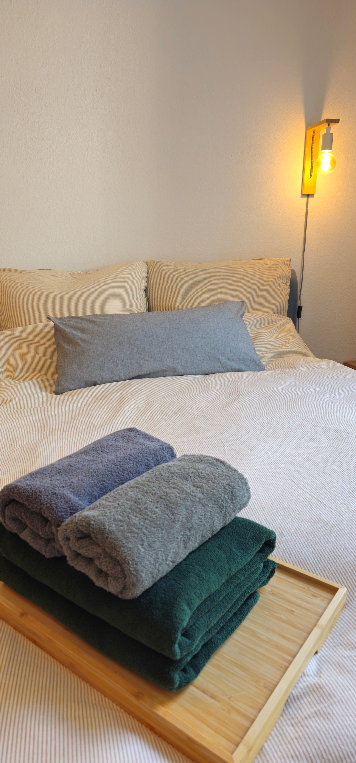 Apartamento de lujo en las inmediaciones de la Feria de Colonia y el Lanxess Arena. Ideal para empresarios, viajeros, viajeros, visitantes de la feria y turistas de Colonia. * Sin cocina ni mesa de comedor * Romántico y ultramoderno amueblado en 26 metros cuadrados. * Cama grande de 180x200 para un total de 2 personas * Balcón con vistas al campo. * Cuarto de baño con cabina de ducha * Ropa de cama limpia, secador de pelo, champú, loción, desodorante. * Internet WIFI GRATIS las 24 horas sin coste adicional