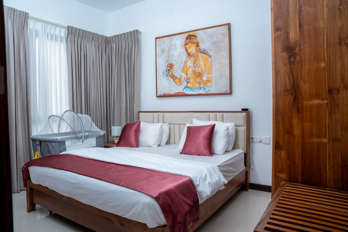 Disfruta de la sencillez de este alojamiento tranquilo, céntrico y espacioso. Apartamento amueblado a estrenar, totalmente climatizado, 2 dormitorios, ambos con baño adjunto y agua caliente. Con todas las comodidades para la vida moderna, seguridad las 24 horas, los 7 días de la semana, un lugar perfecto para relajarse, trabajar y disfrutar. Ubicado en la zona residencial de alta gama de Colombo. Cerca de conexiones de transporte, parques, bares, supermercados, pubs, salones, etc. Los huéspedes también pueden hacer el registro de entrada o de salida durante la medianoche.