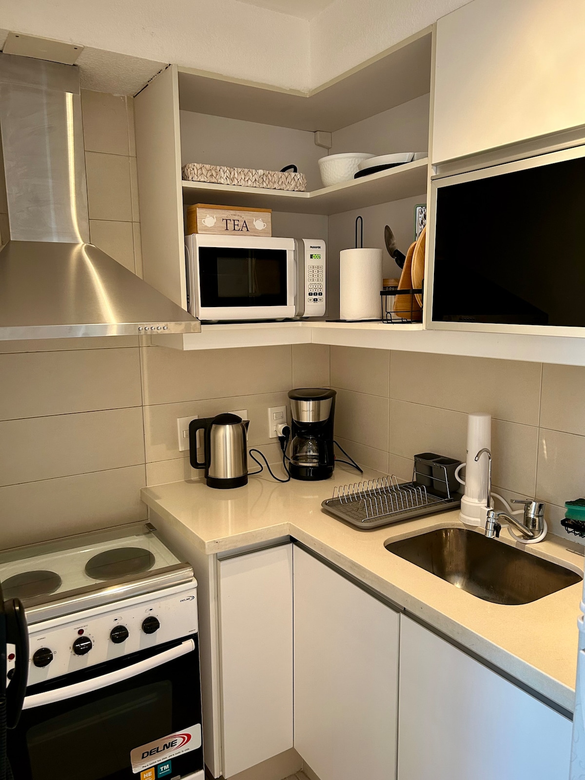 Lugares de interés: El barrio histórico con todo su encanto se encuentra a 10 minutos del lugar. Te va a encantar mi espacio por la luz, un balcón que se puede disfrutar a toda hora con una vista increíble. Plenamente disfrutable por sus piscinas, climatizada y al aire libre, gimnasio y sauna. El complejo cuenta también con restaurante propio para comodidad de los huéspedes. El departamento es muy acogedor y cómodo equipado para una excelente estadía.