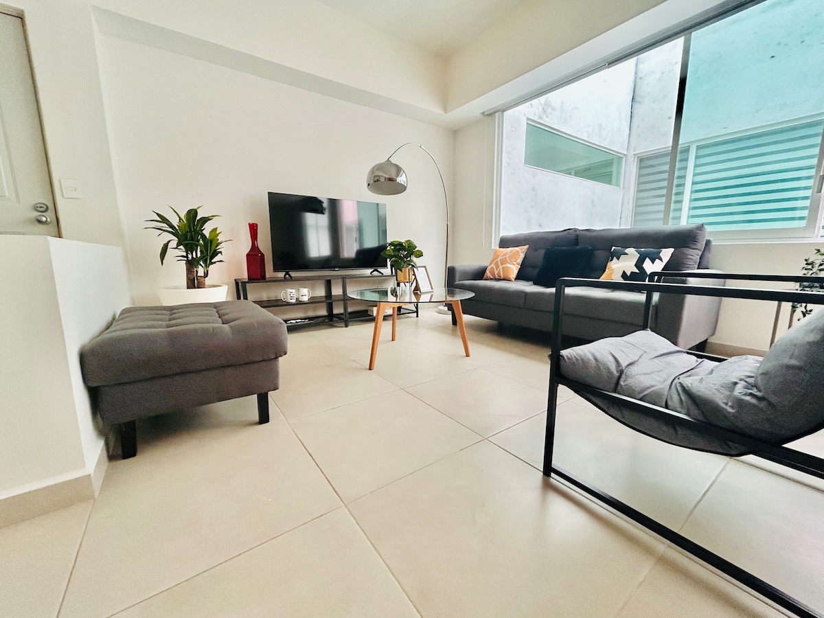 Completely new flat with brand new furniture and amazing location Located in an emblematic part of the city with a cosy room with terrace, 1 bathroom, full kitchen, nice living room with a very confortable sofa, with security. Departamento totalmente nuevo, con muebles de primera calidad y recámara con terraza privada. Con seguridad Todo para una estancia inolvidable en la Ciudad de México. Ubicación estratégica, el departamento está a una calle de Avenida Insurgentes.