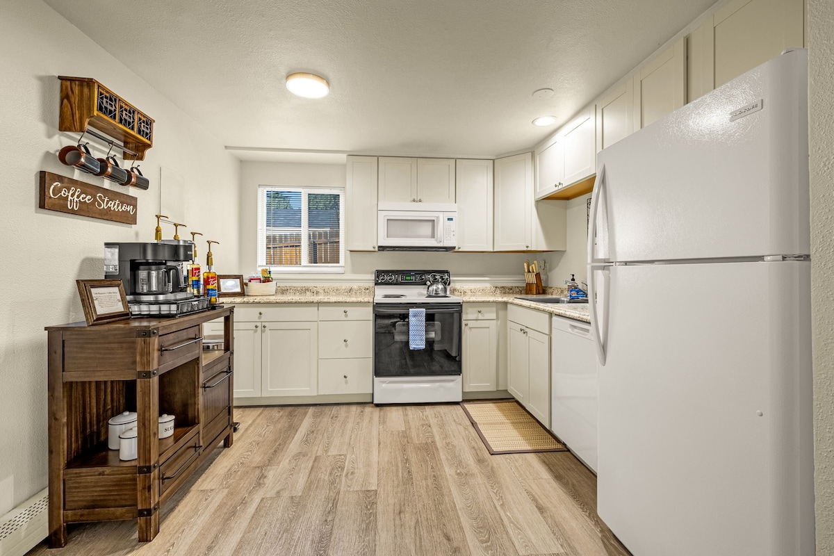 Este hermoso condominio tiene tu propia entrada exterior privada. La unidad cuenta con 2 dormitorios, baño completo, una cocina totalmente amueblada y una sala de estar con un televisor inteligente de 55pulgadas. Hay una practicuna para nuestros huéspedes más pequeños. Se puede acceder fácilmente a nuestro estacionamiento gratuito. La ubicación es céntrica para los sitios populares. El barrio es muy seguro y hay muchas rutas de senderismo cerca. Ofrecemos lavadora/secadora gratuita, WiFi y TV por cable. También se proporciona un patio compartido con 2 barbacoas y mesa de picnic. Permiso A-STRP-25-0921