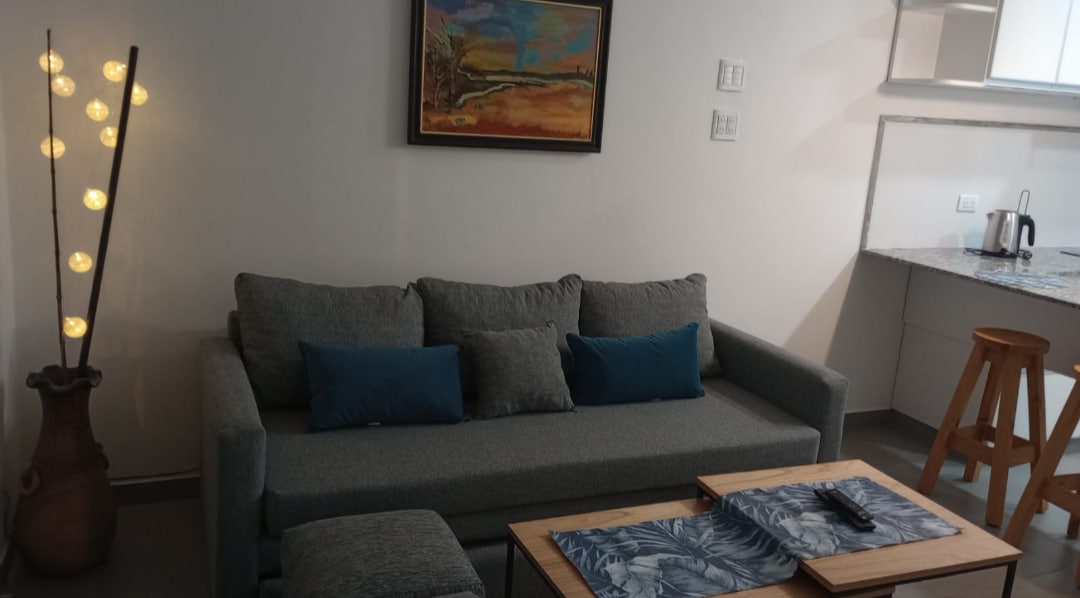 Disfruta de éste confortable departamento en dónde no solo el lugar es cómodo sino también el barrio, en dónde encontras supermercado, panadería, etc . A 10 cuadras del centro de la ciudad. Se encuentra en un primer piso con acceso por escalera. Cuenta con un dormitorio con cama matrimonial y un sofá cama individual para dos personas en el living. Nuestro alojamiento está amoblado, contamos con utensilios de cocina, ropa de cama y ropa blanca. Tv con + de mil canales.
