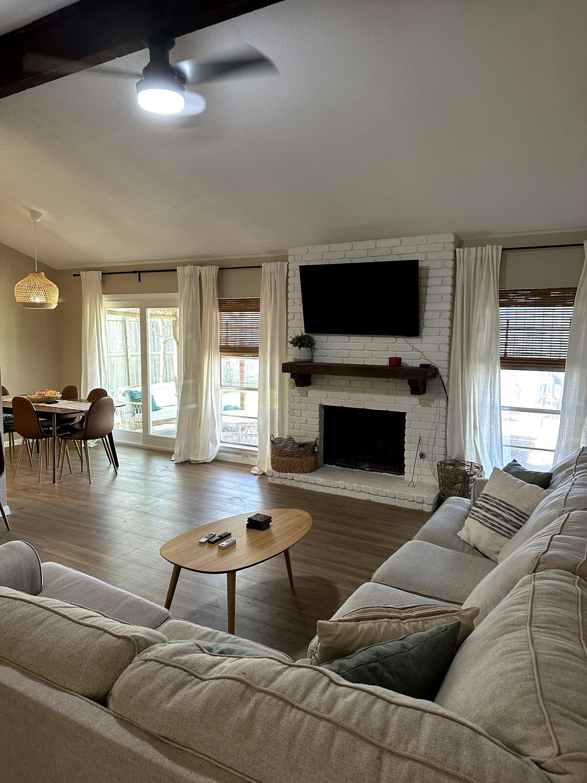 Te damos la bienvenida a tu escapada privada. Esta adorable casa es el lugar perfecto para ti y tu familia. Cuatro dormitorios y una cama principal tamaño king tiene capacidad para 8 personas cómodas. Asa a la parrilla bajo una encantadora pérgola, asa malvaviscos junto a la fogata y relájate con familiares y amigos en este espacioso refugio en el patio trasero con muchos asientos y cómodas sillas columpio. La sala de juegos con Air Hockey y amplios asientos interiores/exteriores proporciona el lugar perfecto para el entretenimiento de su familia.