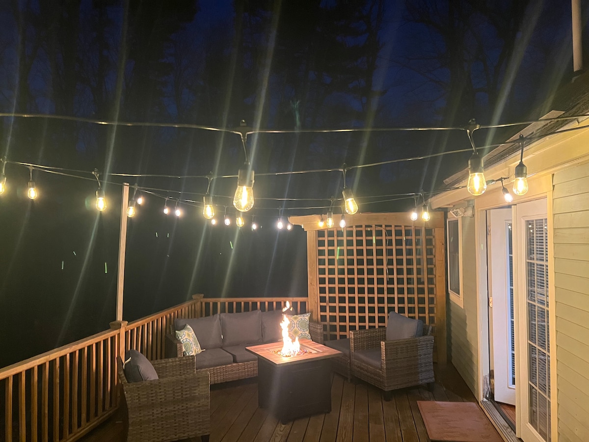 Casa sencilla y acogedora de 2 dormitorios y 1 baño que está ligeramente apartada de la carretera, junto al bosque y a solo cinco minutos a pie del centro de North Conway: ¡lo mejor de ambos mundos! En una carretera privada; un montón de aparcamiento en la entrada. ¡A pocos minutos de todo y de todos! Relájate en la terraza y observa a las ardillas, las ardillas y los pájaros residentes, o relájate junto a la chimenea y disfruta del paraíso invernal que te rodea. Maravíllate con el cielo lleno de estrellas por la noche. ¡Escápate a las montañas y siéntete como en casa!