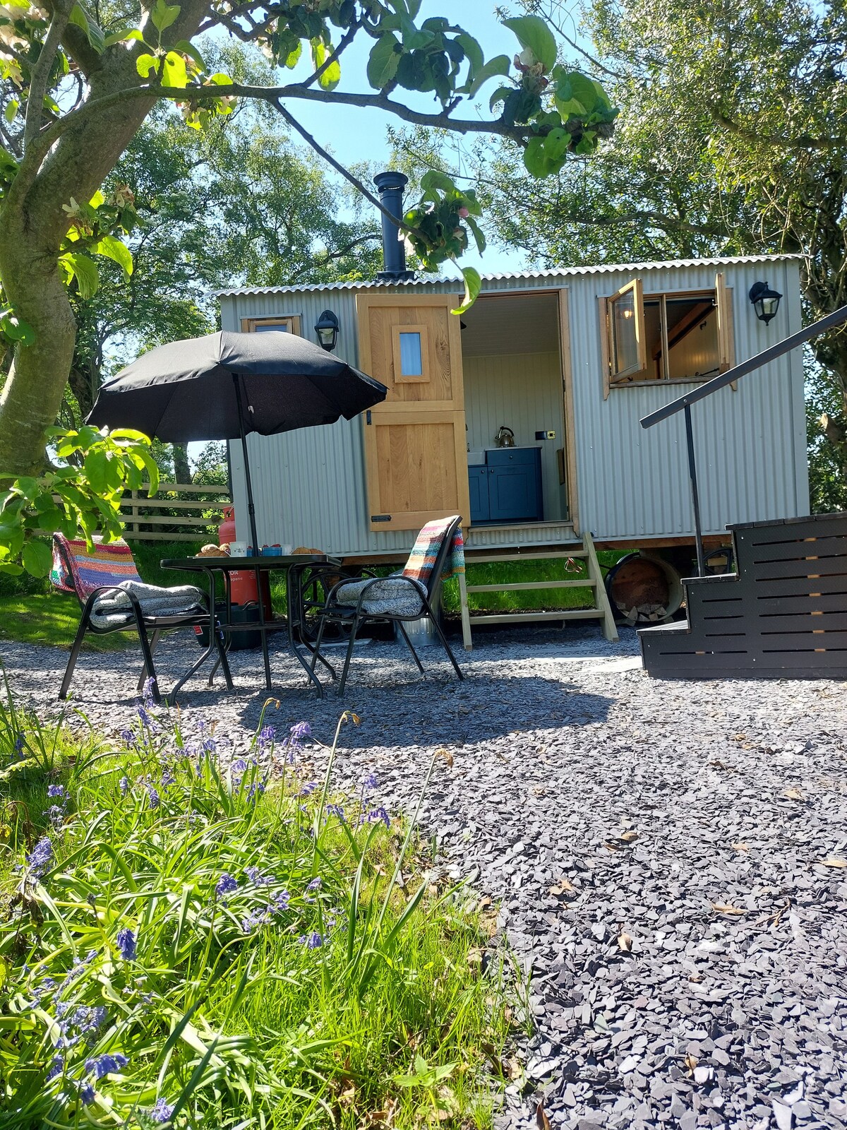 Bienvenido a nuestra casa de pastor a medida, en nuestra pequeña propiedad familiar, ubicada a 1 milla de la histórica ciudad amurallada de Conwy. Quédate con nosotros para tu mejor experiencia de glamping. La cabaña se encuentra sola en un gran césped abierto que tienes para ti, hay una cama doble con colchón de espuma viscoelástica nuevo, sofá cama, cocina, ducha privada/bloque de inodoro. Pasa tus días caminando, haciendo senderismo, ciclismo, ciclismo de montaña, kayak... o simplemente relajarse. Los perros bien educados son bienvenidos. Caballos bienvenidos con costo adicional.