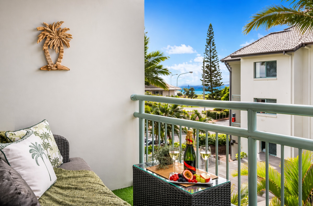 Apartamento de 2 dormitorios junto a la playa en Rainbow Bay, Gold Coast, ¡a solo 100 m de la playa! Camina hasta Snapper Rocks, la playa de Duranbah, las tiendas, los restaurantes y las cafeterías de Coolangatta. Disfruta de vistas al mar, surf de primera clase y fácil acceso al puerto de Jack Evans (5 minutos) para pescar, hacer esnórquel y practicar deportes acuáticos. No se necesita coche: todo está a poca distancia a pie, incluidos Tweed River, Greenmount y los mercados. Perfecto para surfistas, parejas y familias que buscan una acogedora escapada costera.