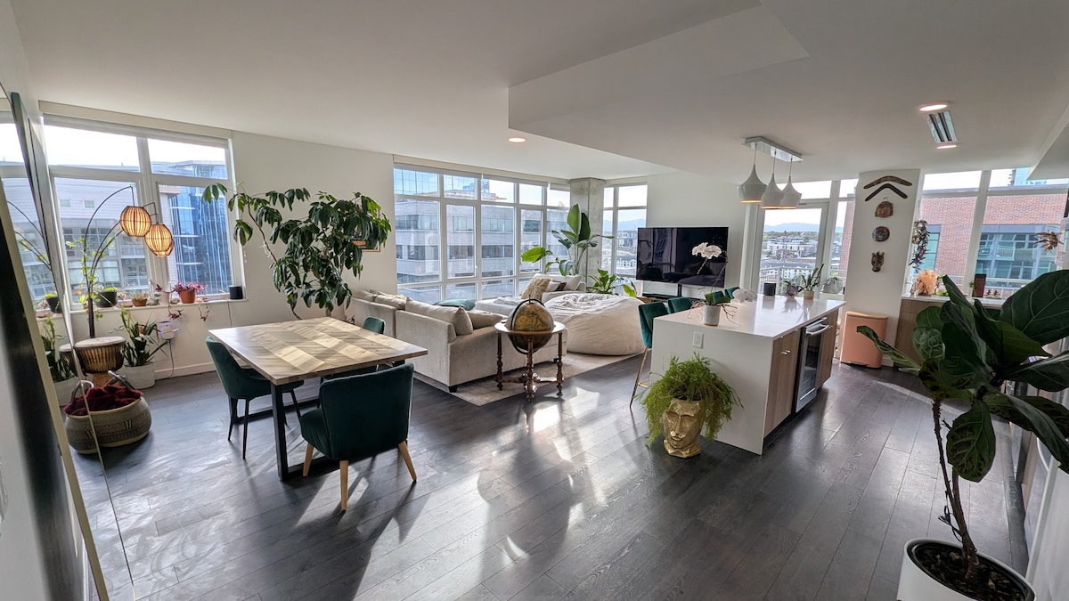 Directamente enfrente de Union Station, este luminoso rincón 2BR/2BA hace que Denver sea fácil: sube a la línea A desde el aeropuerto, camina a todas partes. Relájate en una piscina de agua salada climatizada durante todo el año, 2 jacuzzis, fogatas y parrillas; luego pon una película en el proyector con sonido envolvente. Vistas de piso a techo, un cómodo sofá cama tamaño king para descansar en la sala de estar y un ZenDen lleno de plantas que crean calma. Servicios de resort de lujo + ubicación inmejorable = ambiente de primera para citas, viajes con amigos o de negocios.