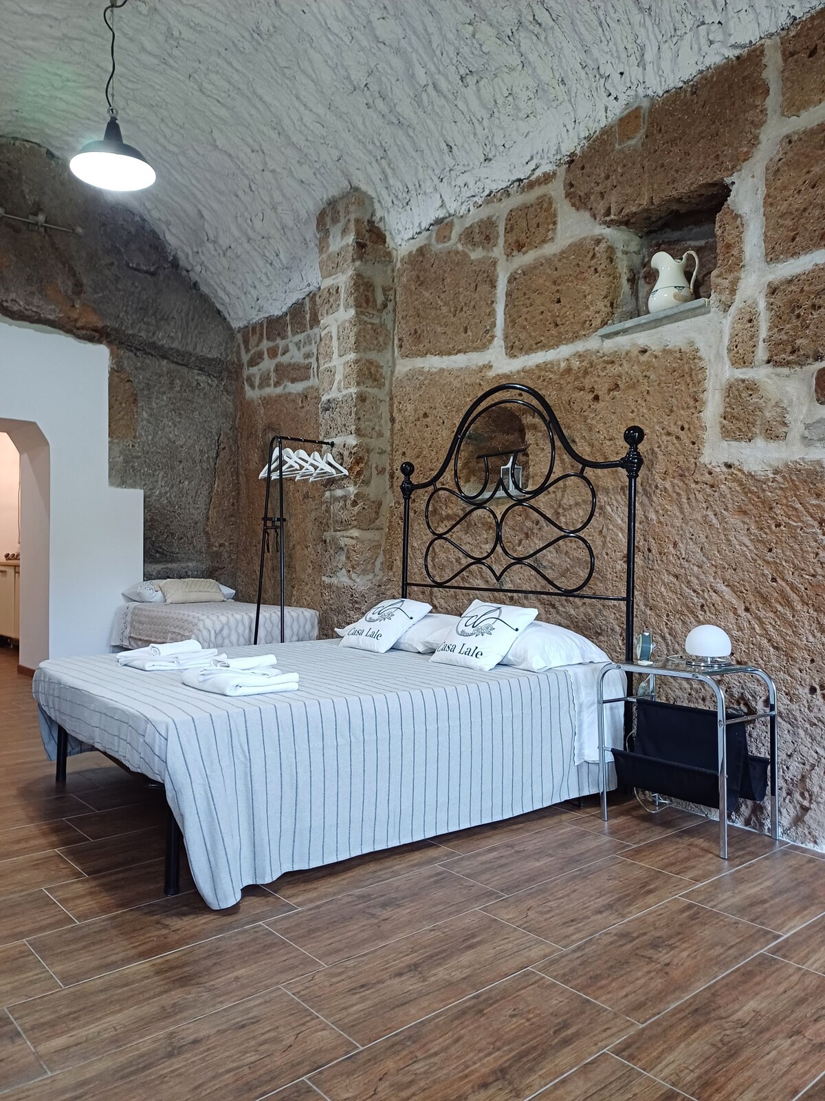 El apartamento está dos pisos por debajo de la plaza, totalmente excavado en la toba. Con vistas al valle, está aislado del ruido de la calle, tranquilo, privado y muy acogedor. Las paredes de toba le dan un aire antiguo, para transportarte a otro lugar en el tiempo. Se llega a pie, a través de un puente peatonal que te lleva directamente a la plaza donde se encuentra la propiedad. Es perfecto para estancias cortas de relajación completa, pero con la cocina totalmente equipada se aprovecha al máximo.