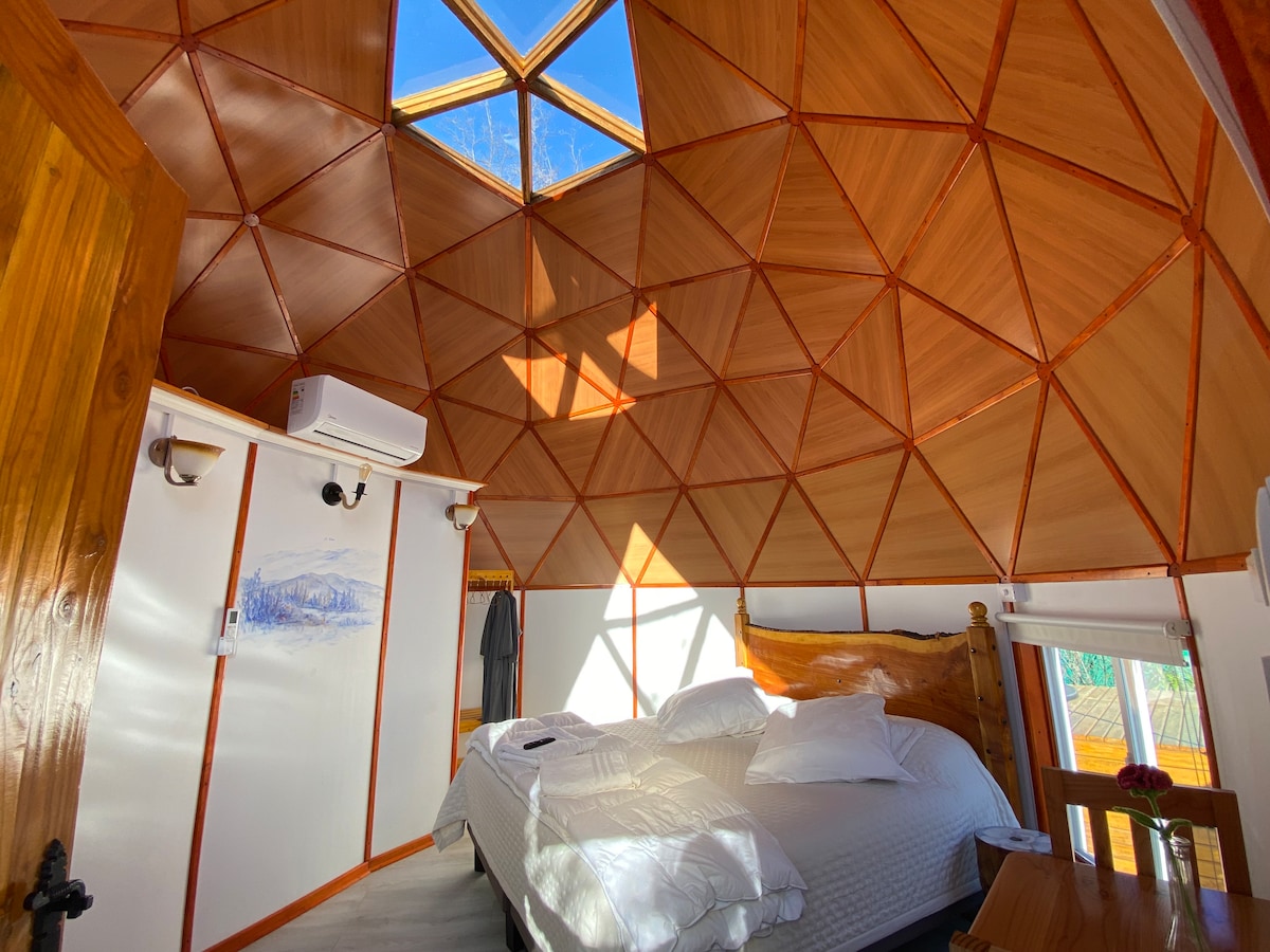 Experiencia diferente en un domo recién renovado de madera , tiene aire para climatizar, realmente precioso , vista a las montañas , absoluta tranquilidad , total privacidad en un Lugar de relajo y desconexión. Un lugar mágico para ir en pareja , cerca de viñas , paseos en el cajón del maipo, a los pies de las montañas , excelentes lugares para almorzar o comer como el "ESKENAZO" A 7 minutos del domo .