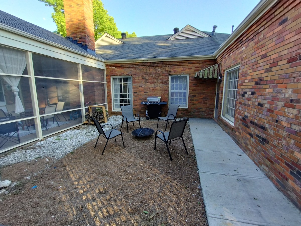 Ubicada en el corazón de East Memphis, esta casa combina una vida cómoda y elegante, un espacio al aire libre inigualable con un enorme patio y cancha de baloncesto personalizada/patio cubierto, además de la comodidad del acceso interestatal cercano y la proximidad a un montón de opciones gastronómicas/comerciales. ¡Llega a cualquier lugar en 20 minutos desde esta ubicación céntrica! Cocina superlinda y bien equipada, camas cómodas y acogedoras, 2 televisores inteligentes con YouTube TV, Prime y Netflix, y wifi: ¡todas las comodidades de tu propio hogar! ¡A poca distancia a pie del parque para perros y del campo de golf de disco!