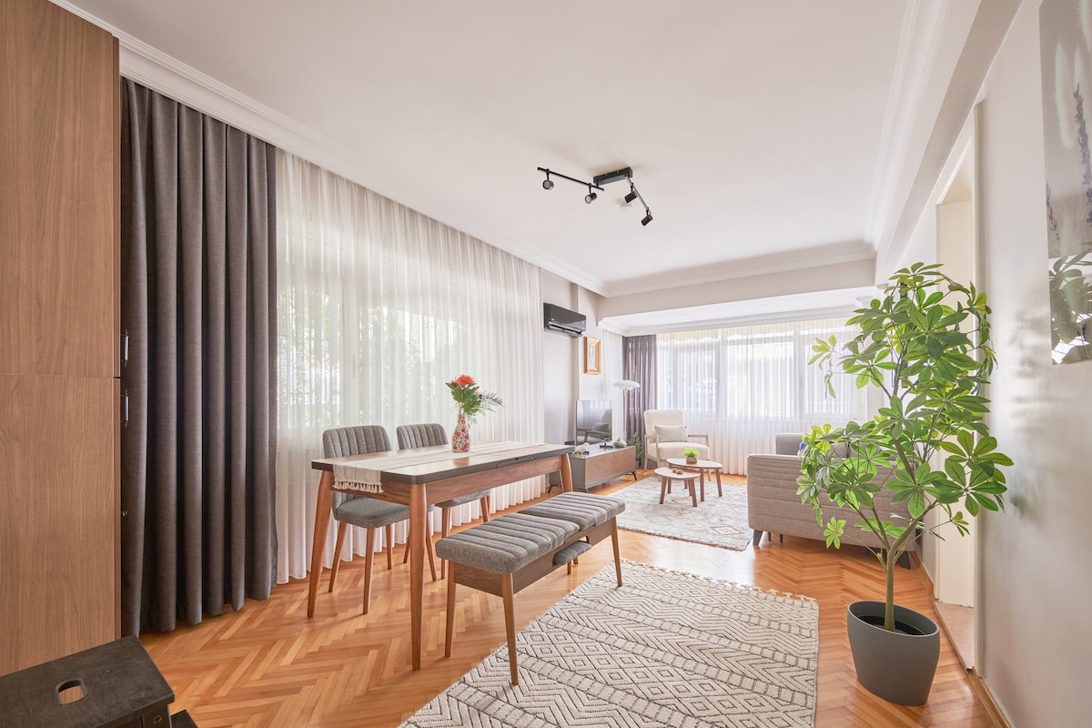 El apartamento te da la bienvenida con su relajante interior y sus espectaculares vistas de la península histórica. Esta increíble vista se vuelve aún más mágica desde el balcón cada temporada y cada hora del día. Todos los muebles se eligen de marcas de diseño exclusivas y con el objetivo de hacerte sentir cómodo en una zona de lujo. Los azulejos turquesas están hechos a mano que dan la personalidad a este mágico espacio de estar. Las paredes tienen una hermosa armonía con hermosas baldosas hechas a medida.