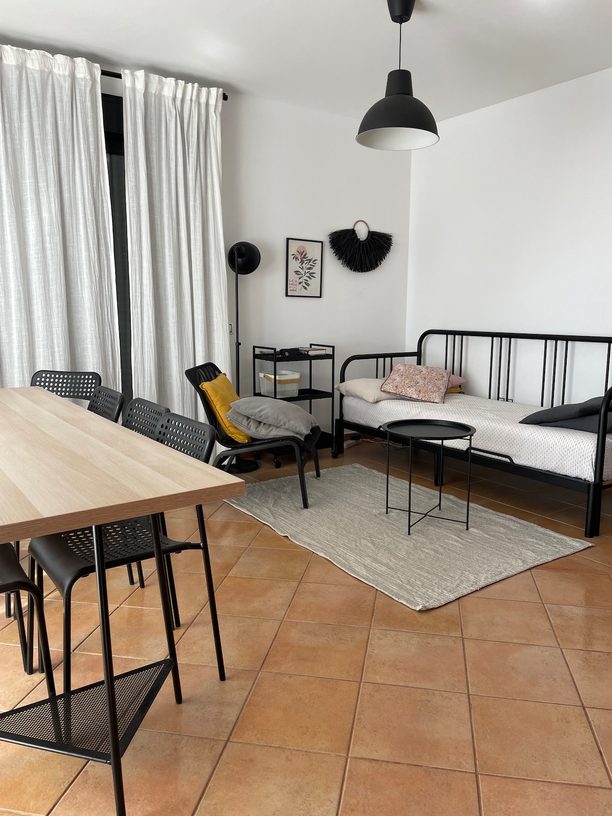 Idéal pour la tranquillité se situe dans un cadre rural à seulement 15 min de Corralejo,(village touristique principal du nord de l'île) Emplacement idéal pour visiter l'île mais aussi profiter des grandes plages du parc naturel 10 min où des plages sauvages de Cotillo 15 min.Voiture indispensable. L'appartement est constitué d'une cuisine ouverte, d'un coin salon, d'une grande chambre individuelle parentale, d'une chambre avec deux lits simples superposés. Terrasse privée. Parking privé