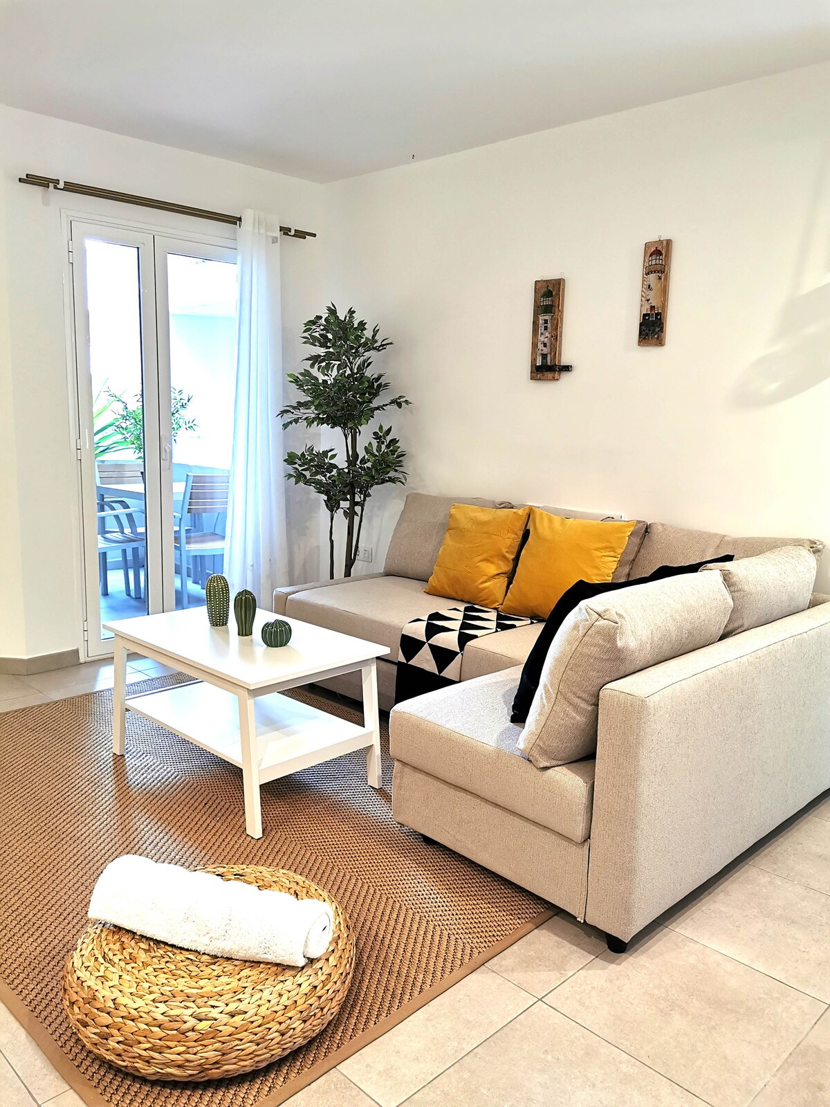 Feel right at home in this bright and comfortable apartment, where a modern kitchen flows into a cozy living space, perfect for relaxing after a day out. The bedroom features a comfortable king-size bed, ideal for a restful night’s sleep. One of the highlights is the private terrace, where you can enjoy beautiful island views, perfect for morning coffee or unwinding at sunset. With fast 600Mbps fiber-optic WiFi, it’s a great option if you need to stay connected while traveling.