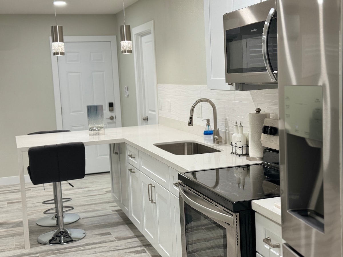 Este estudio extra limpio y apto para trabajar está cerca del estadio State Farm, la Universidad del Gran Cañón y muchas caminatas geniales. Incluye nevera, microondas, placa calefactora, horno tostador y Keurig en nuestra cocina pequeña equipada. También cuenta con una cama tamaño king, baño completo, gran iluminación, sala de estar, TV de 50 pulgadas y un escritorio. El estudio está adjunto a nuestra casa, pero tendrás un espacio de estacionamiento reservado, una entrada independiente y aislamiento acústico adicional para disfrutar de privacidad para el trabajo o la relajación.