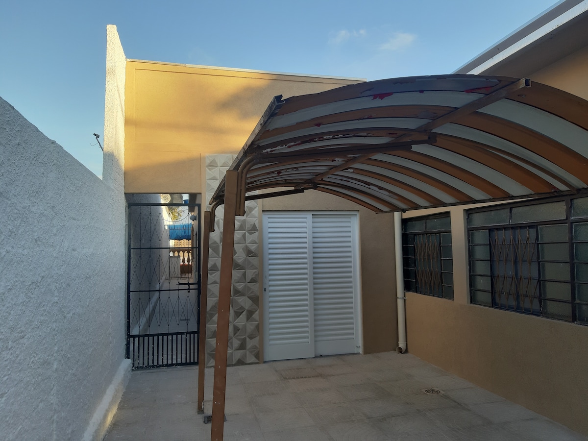 BEM VINDO à nossa casa de hospedes, um ambiente muito tranquilo para ficar com a família. Na casa: -Acomoda até 4 pessoas(2 delas são bi cama na sala ou colchão extra no quarto) -Ar condicionado SOMENTE no quarto. -Smart TV na sala -WIFI -Cozinha -Garagem para 1 carro médio ( camionete não cabe dentro da garagem.)