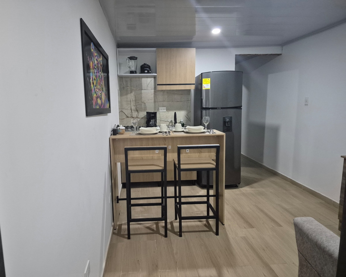 Apartamento independiente y acogedor en el norte de Bogotá. Disfruta de la tranquilidad y versatilidad de este espacio, perfecto para relajarte y trabajar. Cocina equipada, zona de trabajo y Wifi de alta velocidad. Ideal para viajeros de negocios o familias que buscan un refugio urbano perfecto para descansar. Cerca de mercados, Humedal Juan Amarillo, Club de Golf Los Lagartos, Parque Mirador de los Nevados y Las Cometas, CC Centro Suba, Imperial y Titan. Variedad de transporte público.